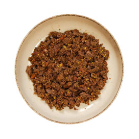 Receta 100 % natural monoproteica sin huesos: ternera magra, vísceras selectas y verduras frescas cocinadas a baja temperatura. Aporta proteínas de calidad, fibra y grasas saludables que favorecen la digestión y la vitalidad de perros activos.